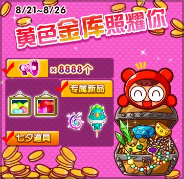 活动期间内,在《泡泡堂》激战模式、怪物模式下进行游戏,将有机会获得各种红包用来存放各种礼品的宝库钥匙,进入地图后可获得海量金币。