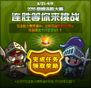 1)连胜大赛期间,指定综合胜利时,通过任务获取奖励;